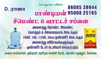 Pandian Stores Supplying Best quality cements,water bottles,water cans 1/2L,1L,20L whole sale & retail price.if you need any Qurries please click the contact below & share to your friends,THANKYOU!